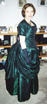 This was my first bustle ballgown, a period I have always adored but never had the opportunity to create. I love the large bustle and severe lines of the 1880's, and found that this taffeta fabric lent itself well to the period.